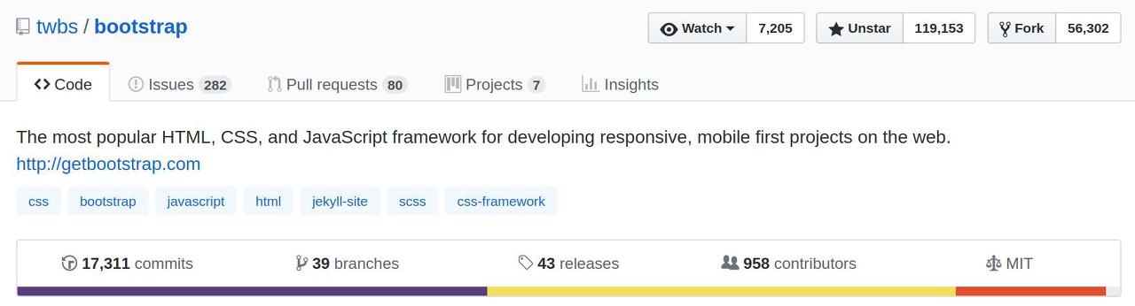 부트스트랩, 깃허브에서 2번째로 별을 많이 받은 리퍼지토리이다. 깃허브에서의 별 갯수가 보여주듯이, 부트스트랩의 인기는 전 세계 웹 개발자들 사이에서 정말 뜨겁다. 부트스트랩은 개인 블로그 개발자 뿐만 아니라, 여러 대기업 웹페이지에서도 사용된다. 예를 들면, NBA.com, Wal-Mart, Target 이 있는데, 이는 모두 부트스트랩을 사용해 웹 프론트엔드를 구축한 홈페이지들이다.