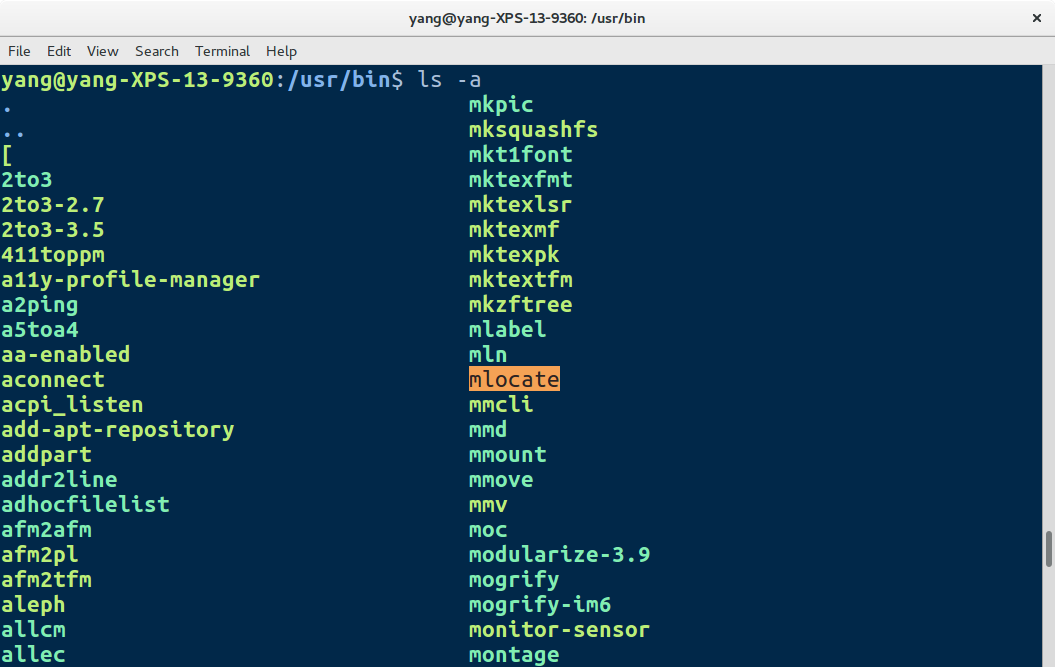 :를 기준으로 여러개 디렉토리들의 절대경로들이 등록되어 있는데, 이중에서 usr/bin/의 경우는 시스템에서 자동으로 등록한 디렉토리이다. usr/bin/은 셸에서 사용하는 실행가능한 바이너리들이 들어있는 디렉토리인데, 아래와 같이 배쉬에서 부를 수 있는 여러 셸 프로그램들이 있다.